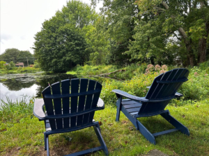 Pictured above: Tom Kelly, of TK Oliver Films, one of our awesome community members here at The Hive RI & Mill at Lafayette recently donated these lovely Adirondack chairs for our community members to enjoy. I know I love taking calls & answering emails while watching the turtles sunning themselves – another reason why working here is so very special…the people, like Tom, and the place!