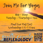 South County Reflexology is our featured community member/business: Claudia is truly an amazing healer and teacher and we are lucky because she expanded her business last year to include Yoga and Reflexology Certification! You can still enjoy the healing benefits of a Reflexology session with her (truly fantastic on SO many levels) or you can take one of her